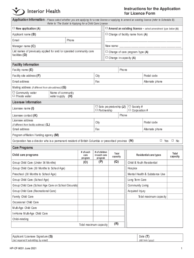Get the free Instructions for the Application for Licence Form (Child Care)