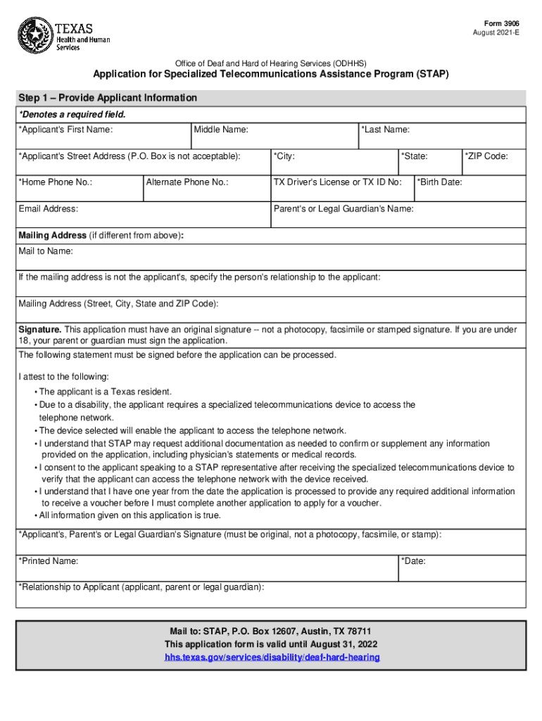 Form 3906 August 2021EOffice of Deaf and Hard of Hearing Services (OD HHS)Application for Specialized Telecommunications Assistance Program (STAR) Step 1 Provide Applicant Information *Denotes a required