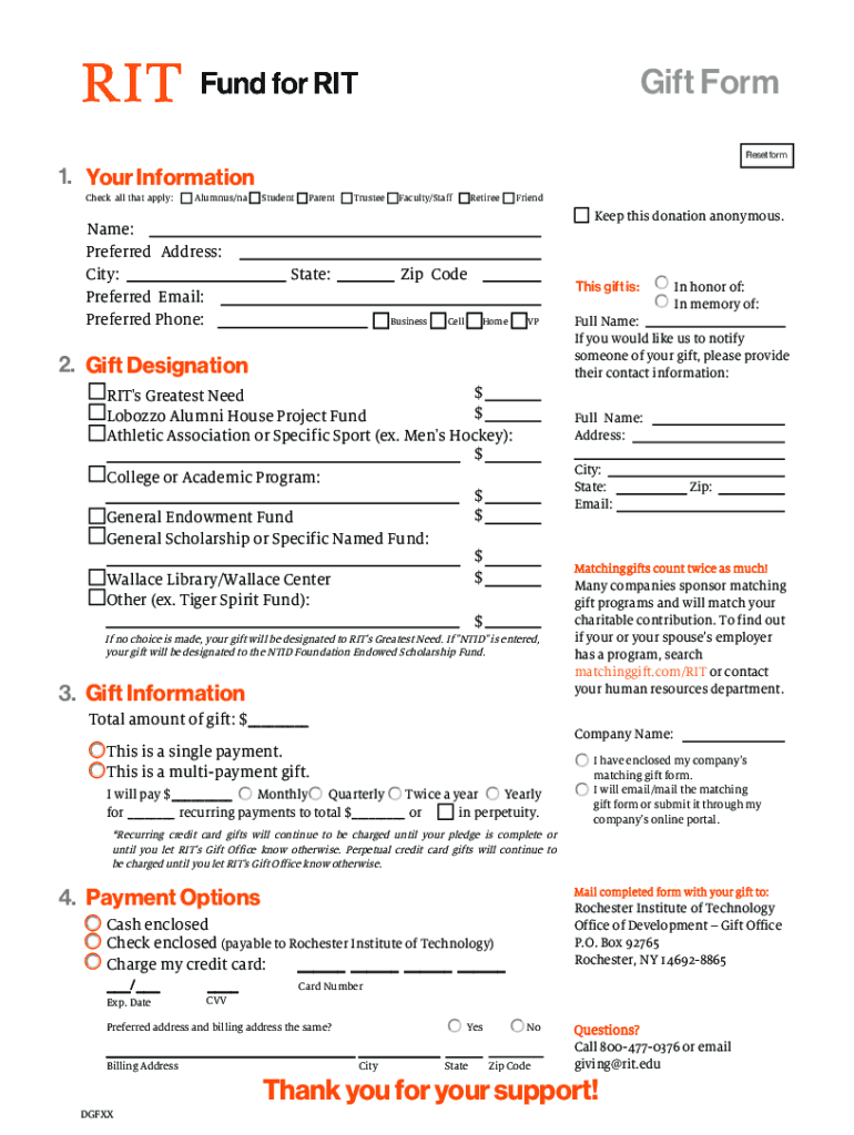 Get the free www.rit.edu giving sitesGift Form - RIT