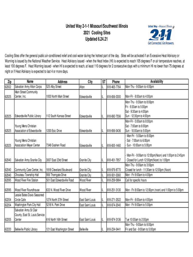 Get the free United Way 2-1-1 Missouri/Southwest Illinois 2021 Cooling ...