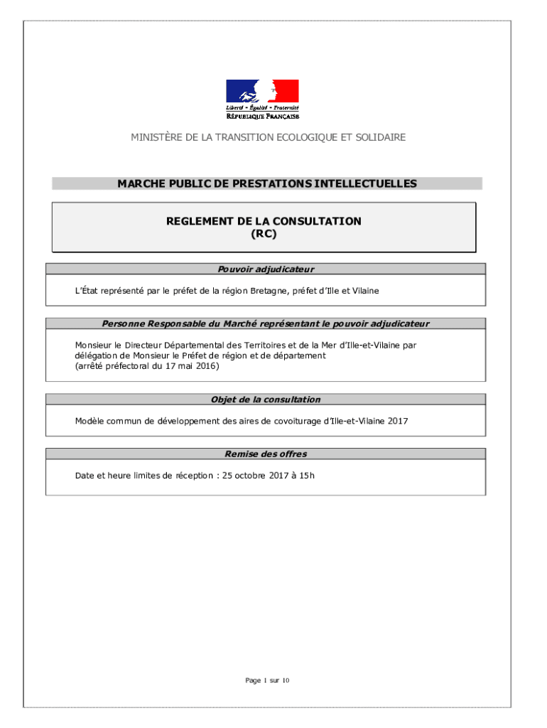 MINISTRY DE LA TRANSITION ECOLOGICAL ET SOLIDAIREMARCHE PUBLIC DE PRESTATIONS INTELLECTUALS REGALEMENT DE LA CONSULTATION (RC) Boudoir adjudicate Stat represent par LE poet DE la region Breanne, poet
