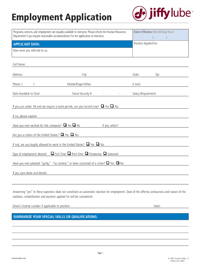 Employment Application Programs, services, and employment are equally available to everyone. Please inform the Human Resources Department if you require reasonable accommodation for the application