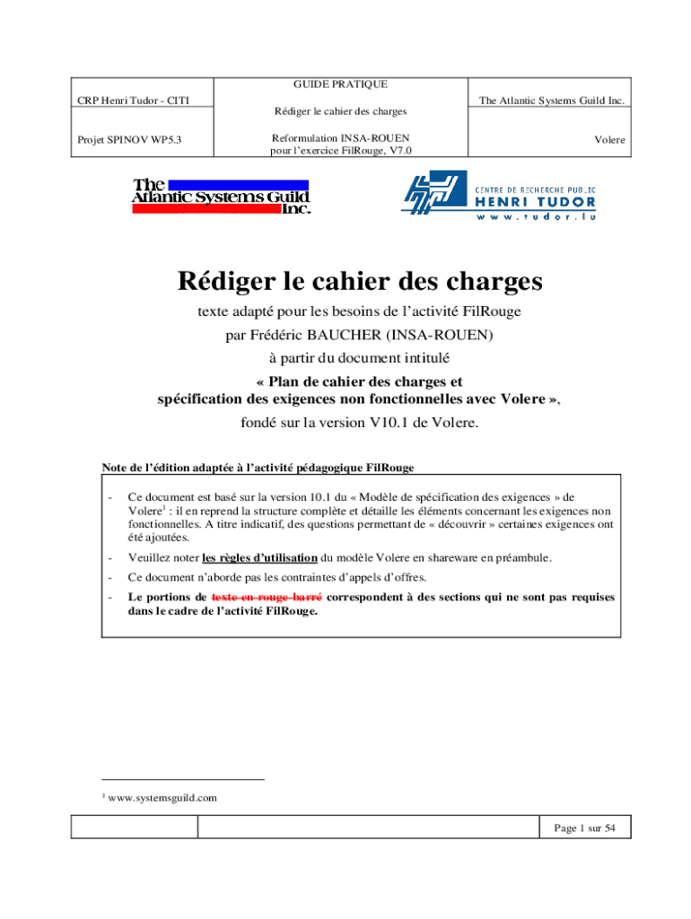 GUIDE to CRITIQUE CRP Henri Tudor CITIRdiger LE cashier DES charges Atlantic Systems Guild Inc. Reformulation INSAROUEN pour exercise Fibrous, V7.0Projet SPINOR WP5.3VolereRdiger LE cashier DES charges