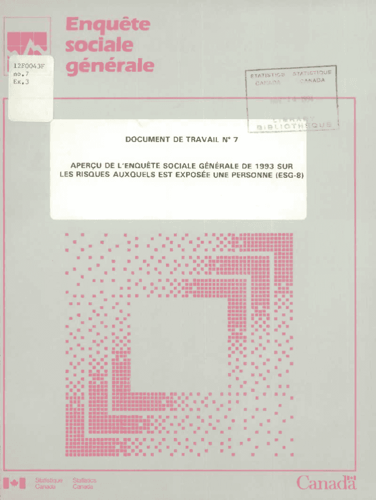 OrmEnqudte social generale12F0043F no.7 Ex.3STATISt LRS ST/TSTDUEQLE DOCUMENT DE TRAVAIL No 7APERQU DE L\'ENQUEUE SOCIAL GENERAL DE 1993 SUR LES Risqué SEQUELS EST EXPOSED ONE PERSONNEL (ESG8) m.