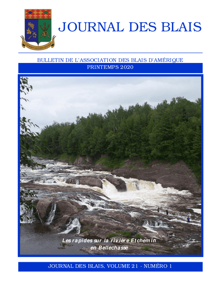 ASSOCIATION DES BLAIR DAMRIQUEJOURNAL DES BLAIR BULLETIN DEL ASSOCIATION DES BLAIR ANTIQUE PRINTERS 2020 2019Les rapids SUR la riv ire Etched en BellechasseJOURNAL DES BLAIR, VOLUME 21 NU MRO 1 JOURNAL