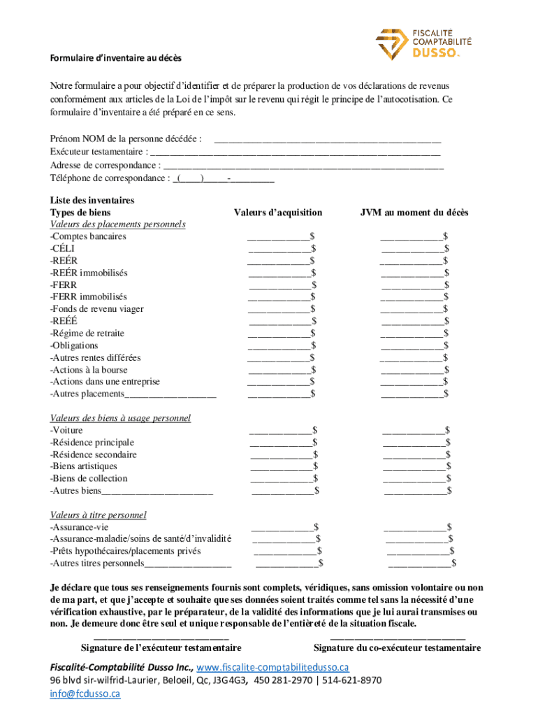 Formula ire inventive AU DCS Note formula ire a pour objectify identifier et de pr parer la production de Los declarations DE revenue conferment aux articles DE la LOI DE limit SUR LE revenue quit