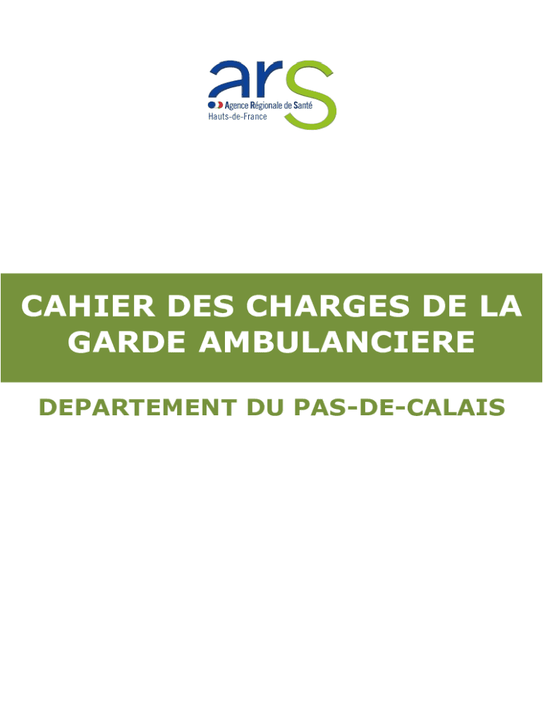 CASHIER DES CHARGES DE LA GARDEN AMBULANCE DEPARTMENT DU PASDECALAISSOMMAIREPREAMBULE .............................................................................................................................
