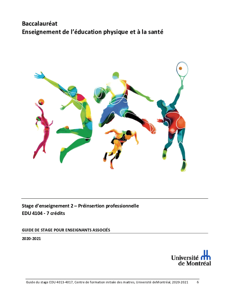 Baccalaureate Engagement DE education physique ET la sandstone enslavement 2 Pr insertion professionally EDU 4104 7 credits GUIDE DE STAGE POUR ENSEIGNANTS ASSOC IS 20202021Guide Du stage EDU 40134017,