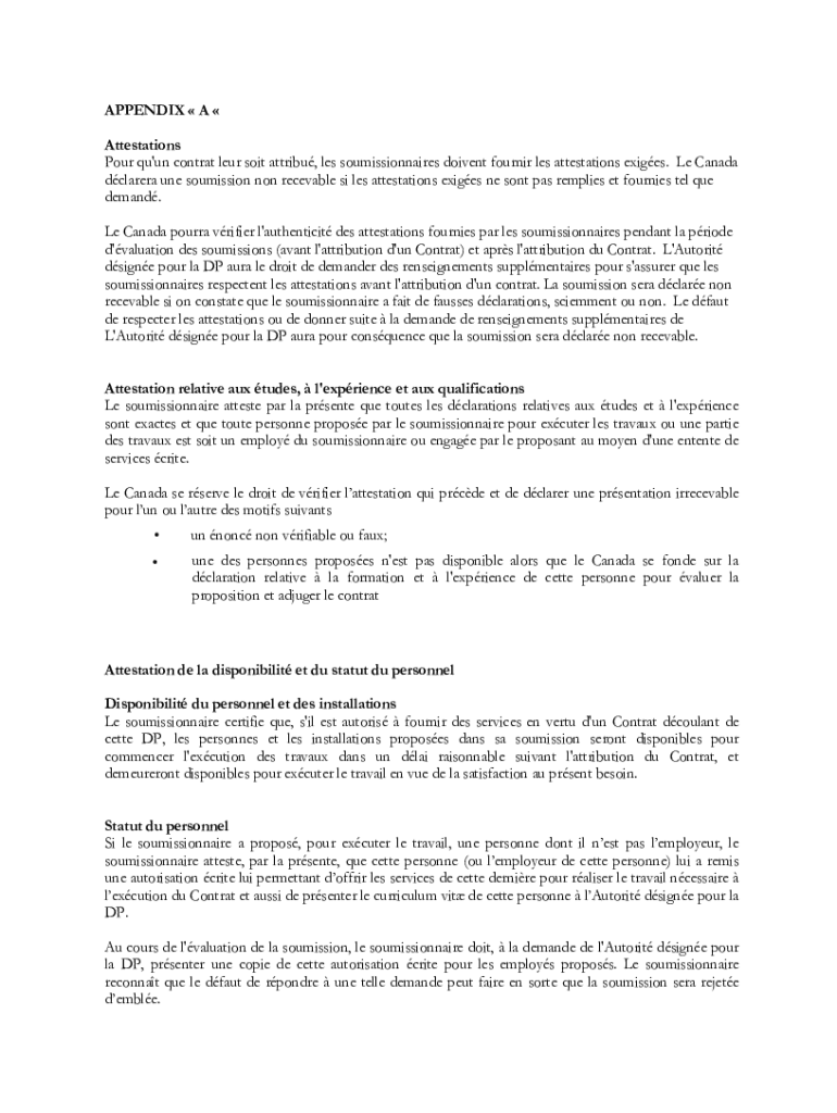 APPENDIX A Attestations Pour EU\'UN contract Lear soil attribute, LES commissionaires driven Fournier LES attestations exiles. Le Canada clear one sou mission non-receivable is fewer attestations