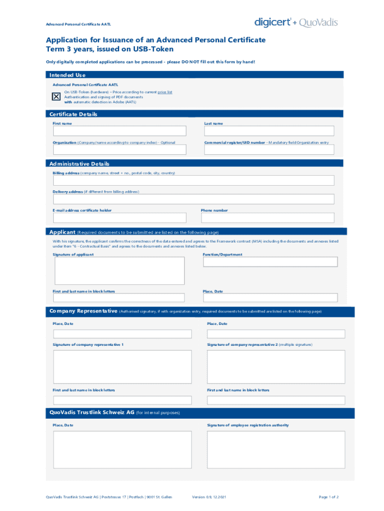 Advanced Personal Certificate AATLApplication for Issuance of an Advanced Personal Certificate Term 3 years, issued on Unbroken Only digitally completed applications can be processed please DO NOT