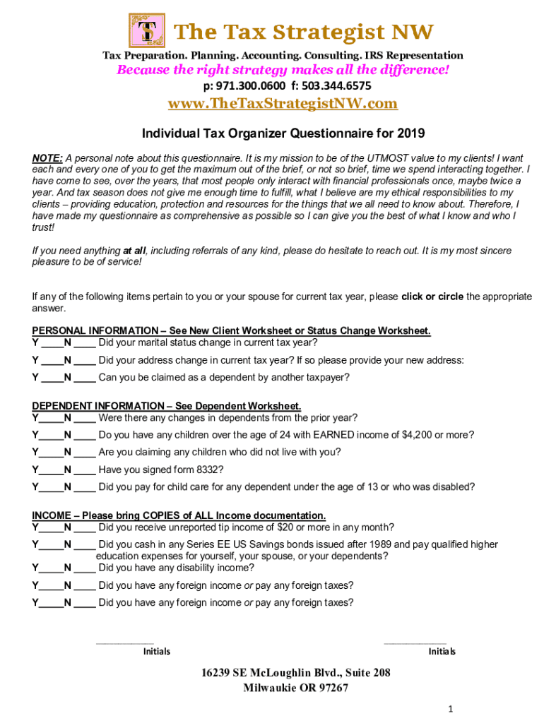 Tax Preparation. Planning. Accounting. Consulting. IRS RepresentationBecause the right strategy makes all the difference! P: 971.300.0600 f: 503.344.6575www. TheTaxStrategistNW.individual Tax Organizer