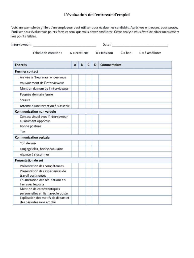 Evaluation DE lent revue employ Voice UN example DE grille quin employer put utilizer pour valuer LES candidate. Apr's Los entrées, vows poured utilizer pour valuer Los points fort set crux Que vows