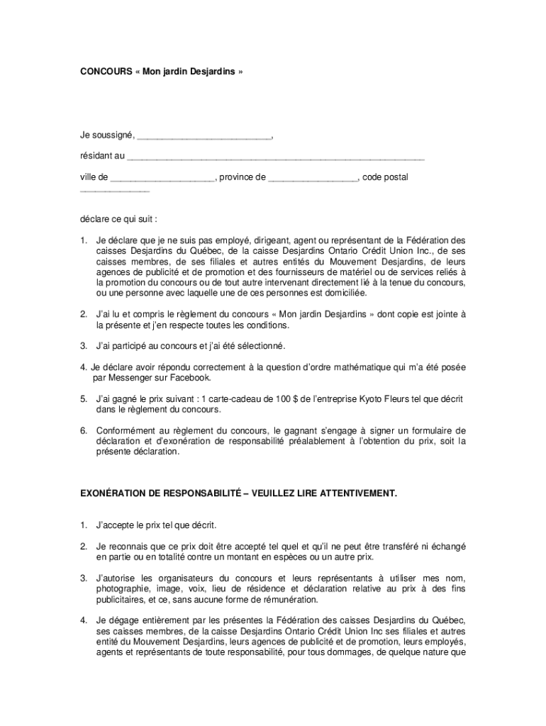 Get the free Formulaire dclaration et exonration - Concours Mon jardin Desjardins