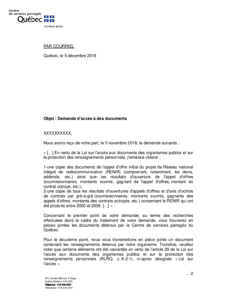 Secretariat grammar COURIER Quebec, LE 5 December 2018Objet : Demand daces DES documentsXXXXXXXXXX, Nous Avon red DE vote part, LE 5 November 2018, la demand private : [] En vert DE la LOI SUR l\'acts