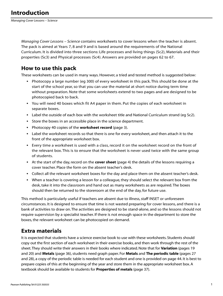 Get the free Science Cover Lesson Worksheets