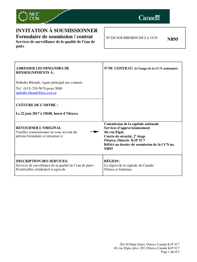 INVITATION COMMISSIONER Formula ire DE sou mission / contract DE COMMISSION DE LA CCN:Services DE surveillance DE la quality DE lead de puitsADRESSER LES DEMANDED DE REASSIGNMENTS :NR95No DU CONTRACT: