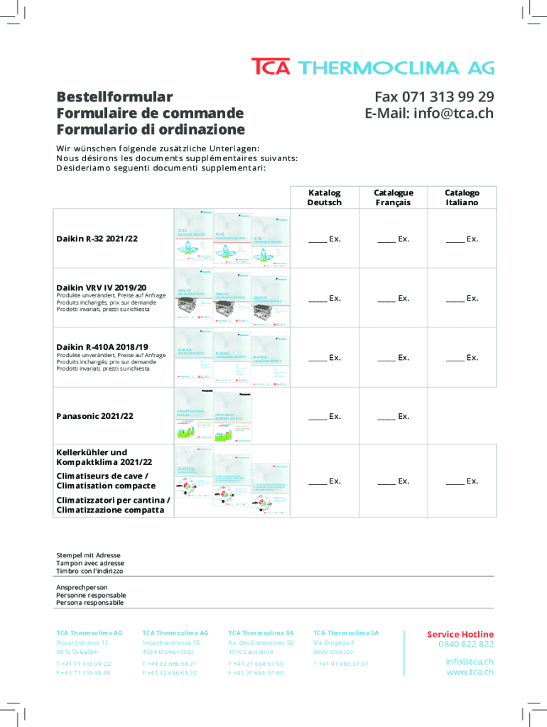 Bestellformular Formula ire DE command Formulation DI ordinazioneFax 071 313 99 29 Email: info@tca.chWir Wijchen phosgene zustzliche Undertaken: Nous irons LES documents supplmentaires servants: Desiderata