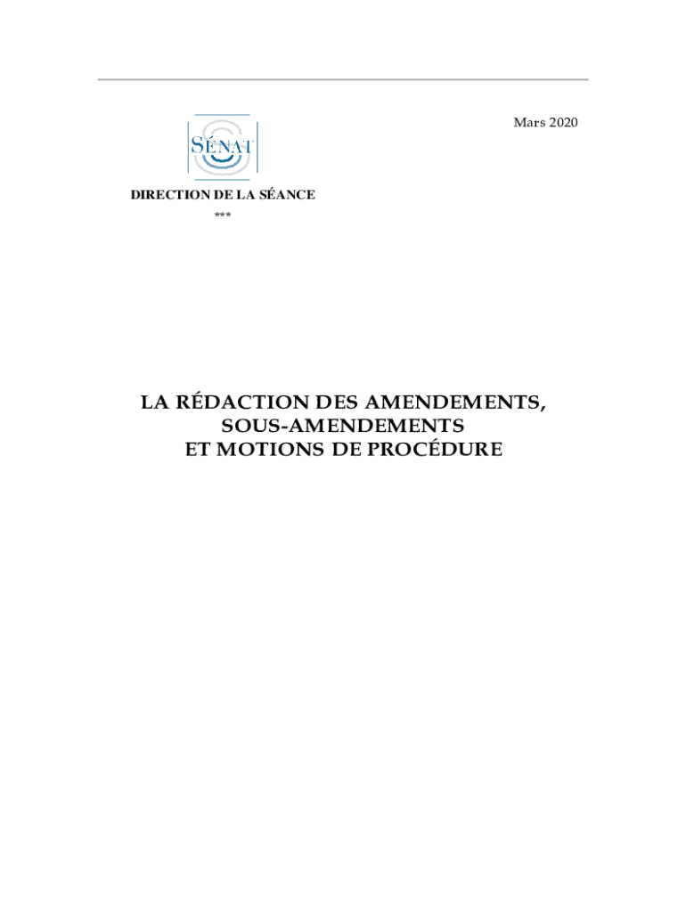 Mars 2020DIRECTION DE LA SINCE ***LA REACTION DES AMENDMENTS, SOUSAMENDEMENTS ET MOTIONS DE PROCDURE3SOMMAIRE Pages AVANTPROPOS ....................................................................................................................9LES