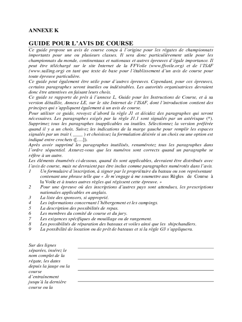Get the free GUIDE POUR LAVIS DE COURSE - espaces ffvoile