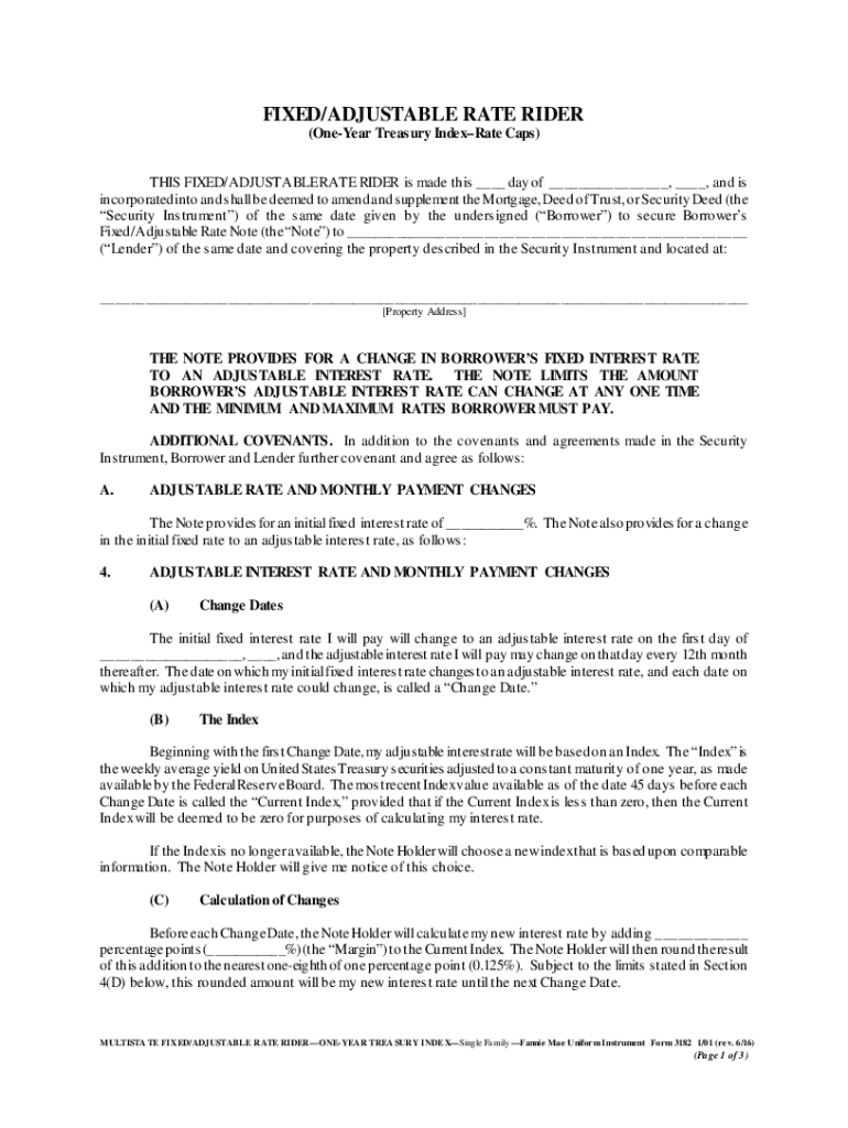 Get the free TEXAS HOME EQUITY FIXED/ADJUSTABLE RATE RIDER (One-Year ...