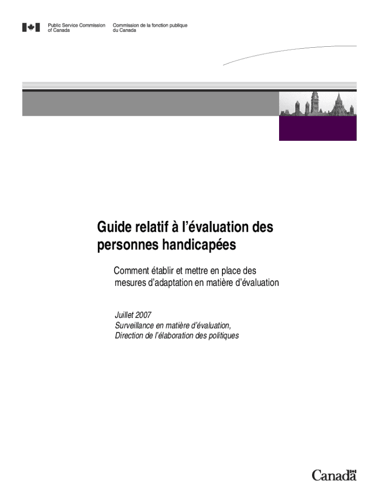 Guide related evaluation DES personnel handicaps Comment table ET mettle en place DES measures adaptation en mature evaluation Bullet 2007 Surveillance en mature evaluation, Direction DE elaboration