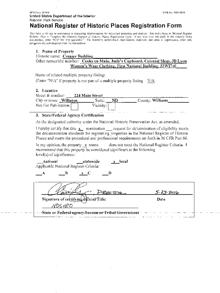 Get the free National Register of Historic Places Official ... - NPS - history nd