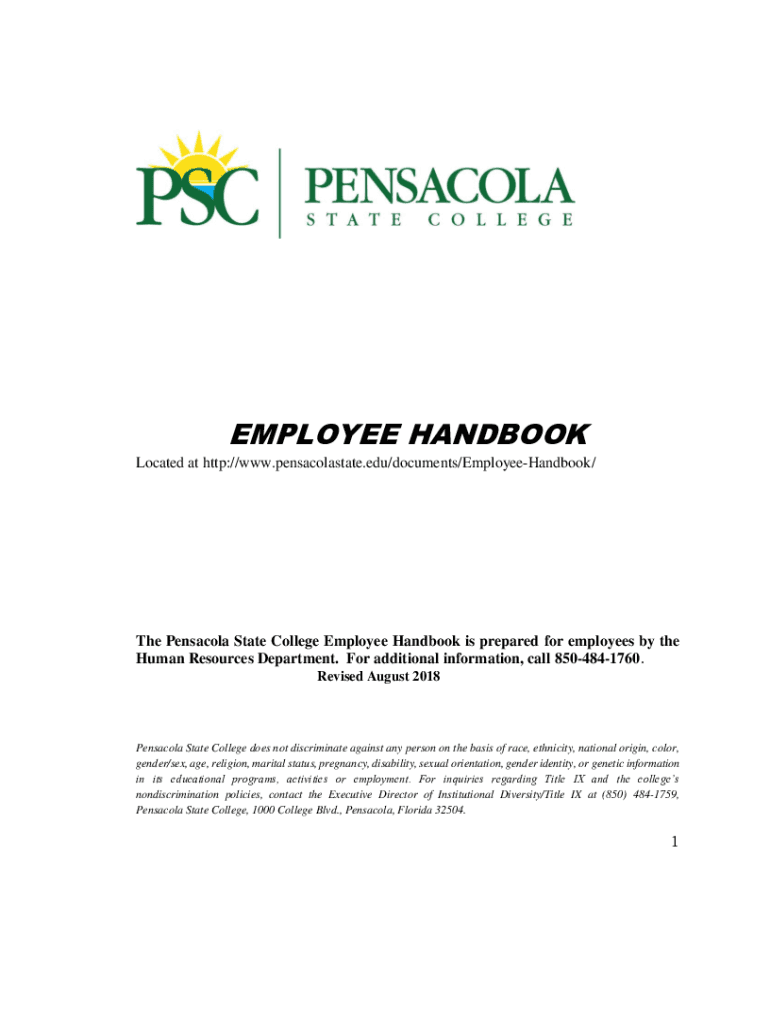 EMPLOYEE HANDBOOK Located at HTTP://www.pensacolastate.edu/documents/EmployeeHandbook/The Pensacola State College Employee Handbook is prepared for employees by the Human Resources Department. For