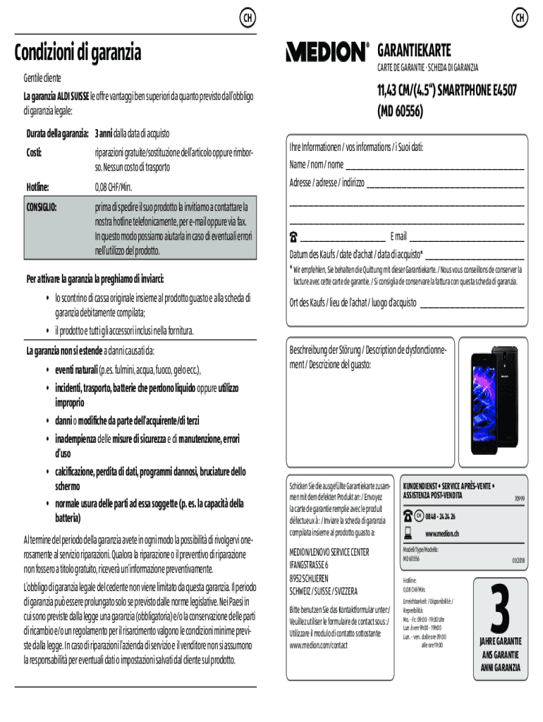 CHCHGARANTIEKARTECondizioni DI garanziaCARTE DE GUARANTEE SCHEMA DI GARANZIAGentile client La paranoia ALDI SWISS LE offer vantage Ben superior the quarto proviso dallobbligo DI paranoia legal: Data