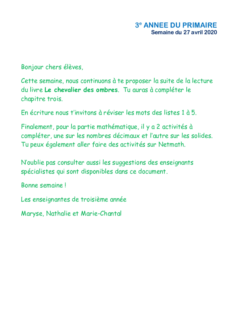 3e ANNE DU PRIMARY Remained Du 27 April 2020Bonjour chess lies, Bette remained, nous continuous the proposer la suite DE la lecture Du live Le chevalier DES hombres. Tu's auras computer LE chapter