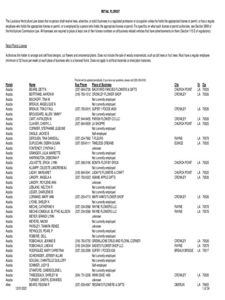 Get the free WHOLESALE FLORIST The Louisiana Horticulture Law states ...