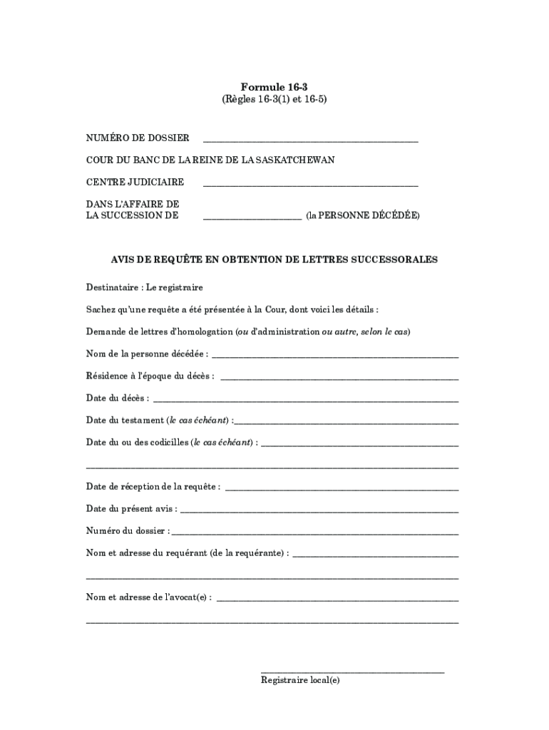 Formula 163 (Rules 163(1) ET 165)NU MRO DE DOSSIER___ FOUR DUB ANC DE LA RHINE DE LA SASKATCHEWAN Center JUDICIAIRE___DANS AFFAIRS DE LA SUCCESSION DE___ (la PERSONNEL DCE)AVIS DE REFUTE EN ATTENTION