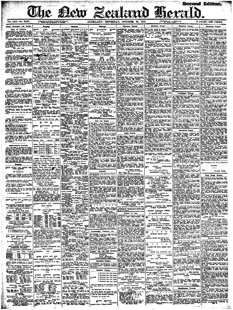 Second Edition;The New Zealand Herald. Vol. Lilo. 16,370. Births, Marriages, and Deaths. Shipping. Domestics Wanted. Fruit grower; would entertain purchase partnership of going concern. E.M., 16,herald.BUTCHER,