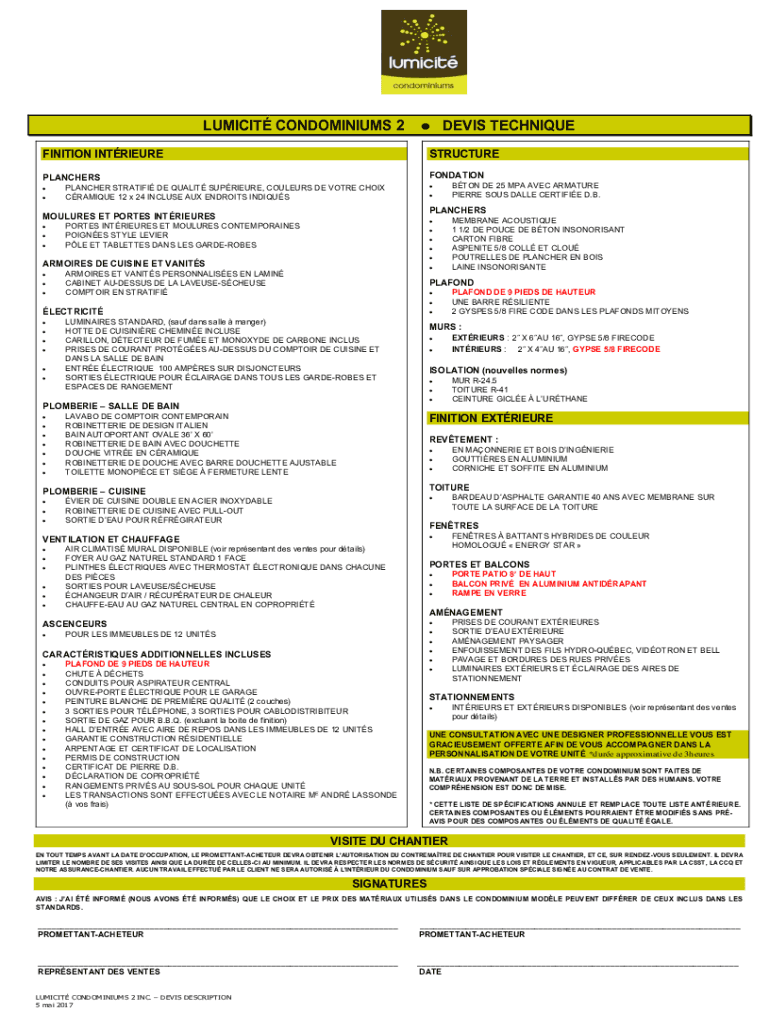 Lumicit condominiums 2 devis can be filled out online or in paper format with detailed information about the condominium units.