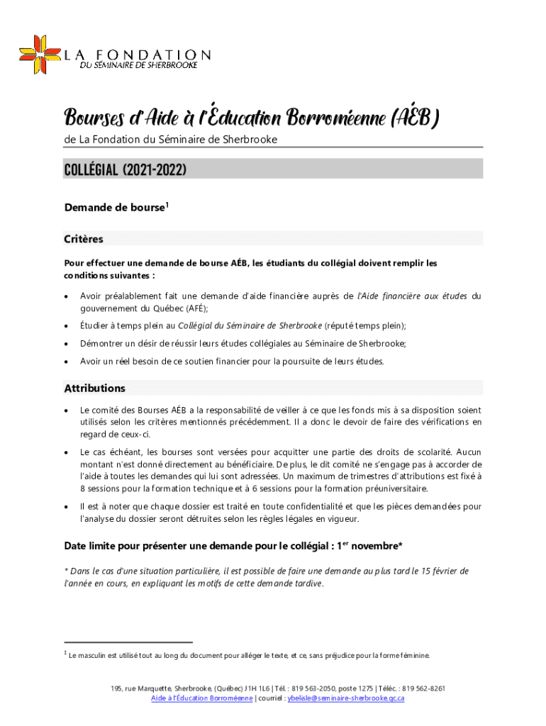 Courses aide education Borromenne (AB) de La Foundation Du Minaret de SherbrookeCOLLGIAL (20212022) Demand de bourse1 Cities Pour effected one demand DE course AB, LES students Du collegial driven