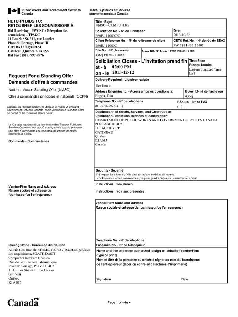 Get the free buyandsell.gc.ca cds publicRETOURNER LES SOUMISSIONS : NMSO - COMPUTERS