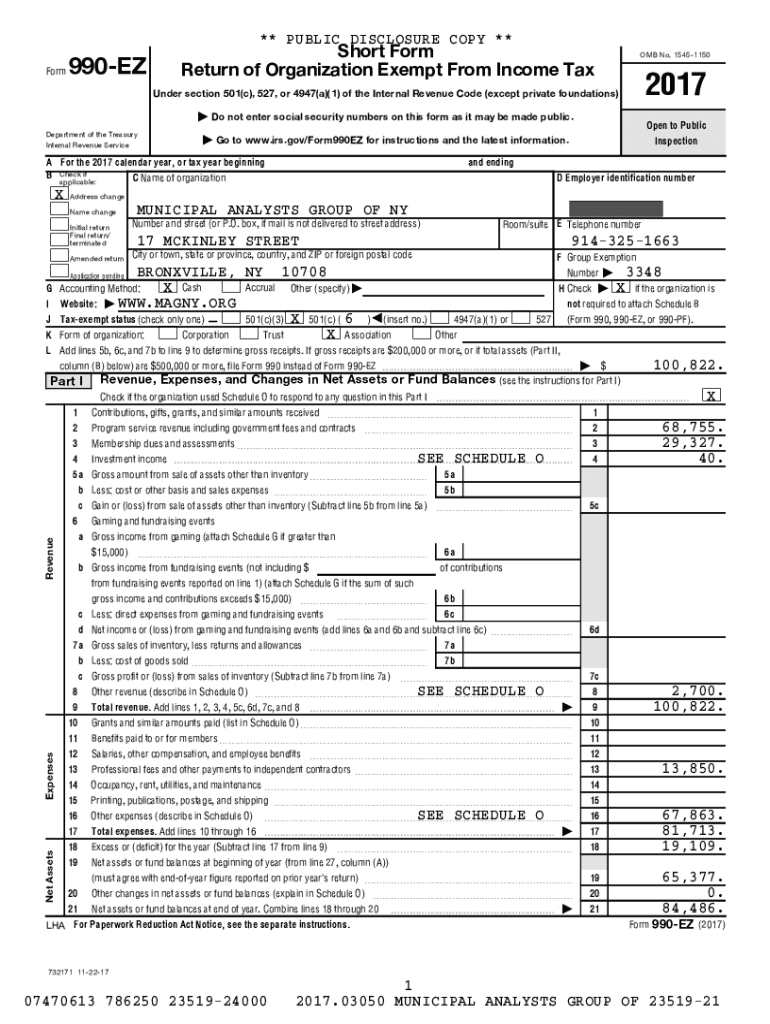 ** PUBLIC DISCLOSURE COPY **Form990EZShort Form Return of Organization Exempt From Income Tax OMB No. 15451150Under section 501(c), 527, or 4947(a)(1) of the Internal Revenue Code (except private