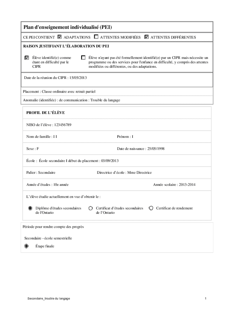 Plan d\'engagement individuals (PEI) CE PEI CONTIENTADAPTATIONSATTENTES MODIFIESATTENTES DIFFRENTESRAISON JUSTINIAN ELABORATION DU PEI love identify(e) come tan ten difficult par LE Improve n\'plant