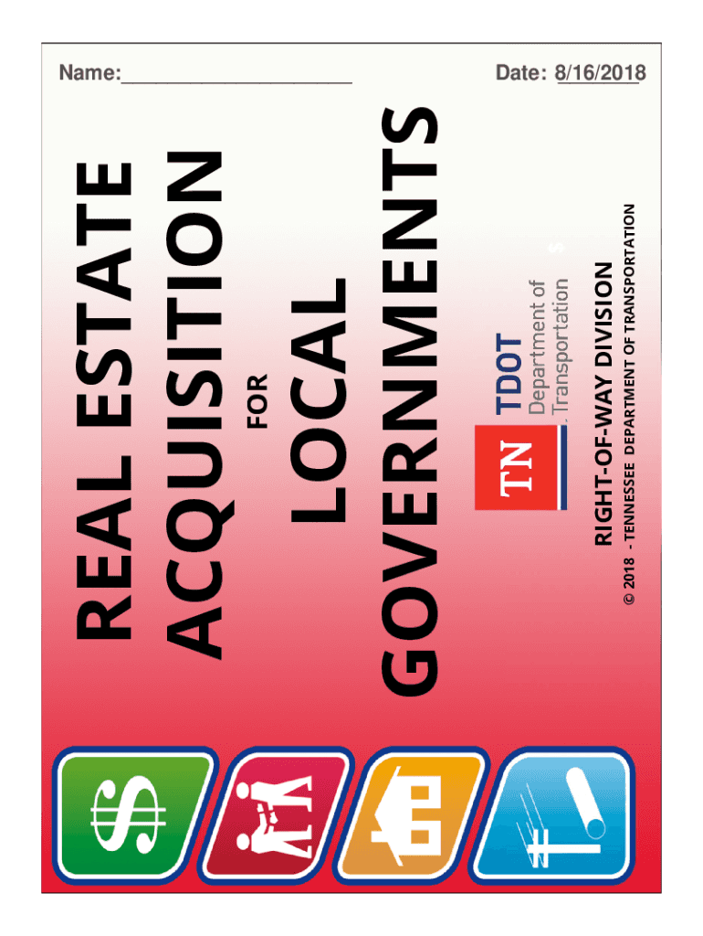 2018 TENNESSEE DEPARTMENT OF TRANSPORTATIONRIGHTOFWAY DIVISIONAL GOVERNMENTSFORREAL ESTATE ACQUISITION Name:___ Date: 8/16/2018 ___REAL ESTATE ACQUISITION LOCAL GOVERNMENTS RIGHTOFWAY DIVISION 2018
