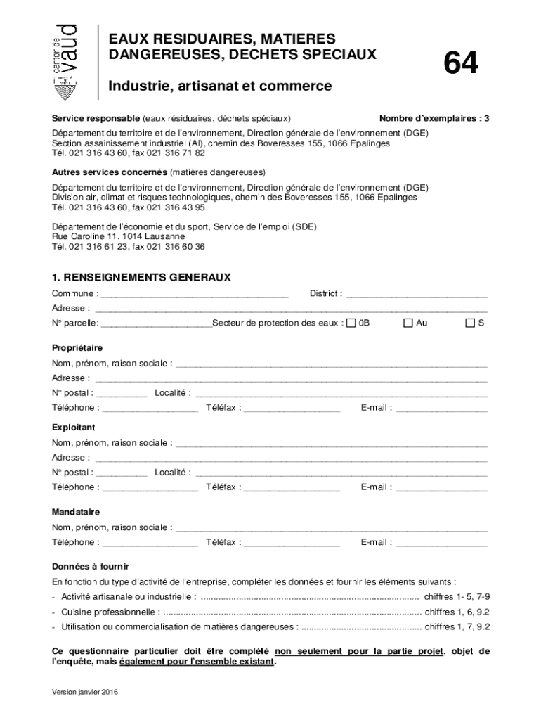AUX RESIDUES, MATTERS DANGEROUS, SECRETS SPECIAUX64Industrie, artisan at ET commerce Service responsible (aux sidearms, chest social)Hombre exemplars : 3Dpartement Du territory et de environment,