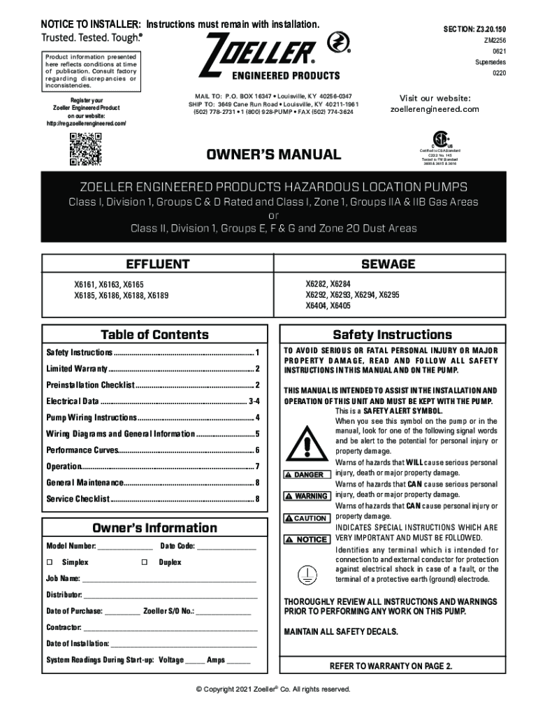 NOTICE TO INSTALLER: Instructions must remain with installation.SECTION: Z3.20.150 ZM2256 0621 Supersedes 0220Product information presented here reflects conditions at time of publication. Consult