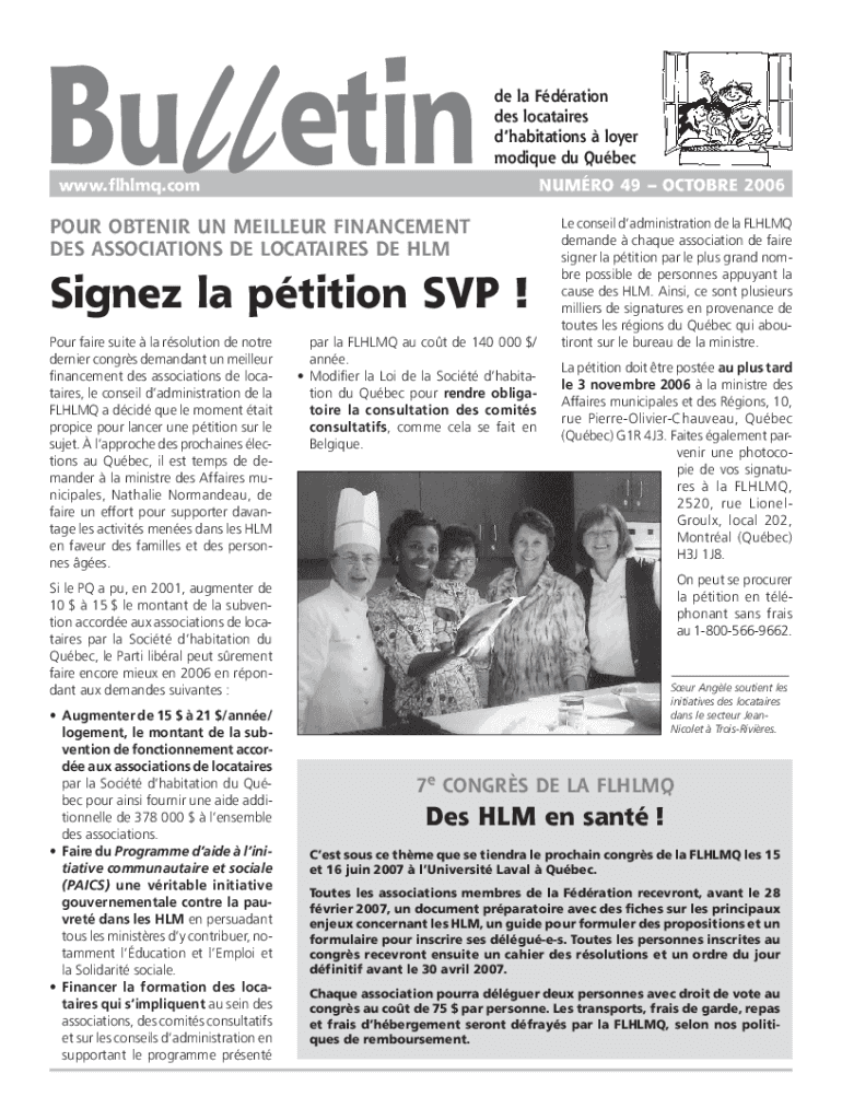 Get the free Bulletin 49 - Fdration des locataires d'habitationsloyer ...