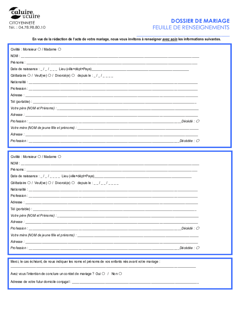 How to fill out dossier de mariage feuille