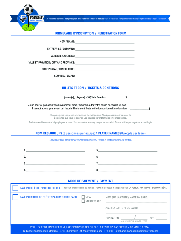 FOOTGOLF TOUR NOI / TOURNAMENT2e edition Du Tourney de footgolf AU profit DE la Foundation Impact de Montral / 2nd edition of the Footgolf tournament benefiting the Montreal Impact FoundationFORMULAIRE