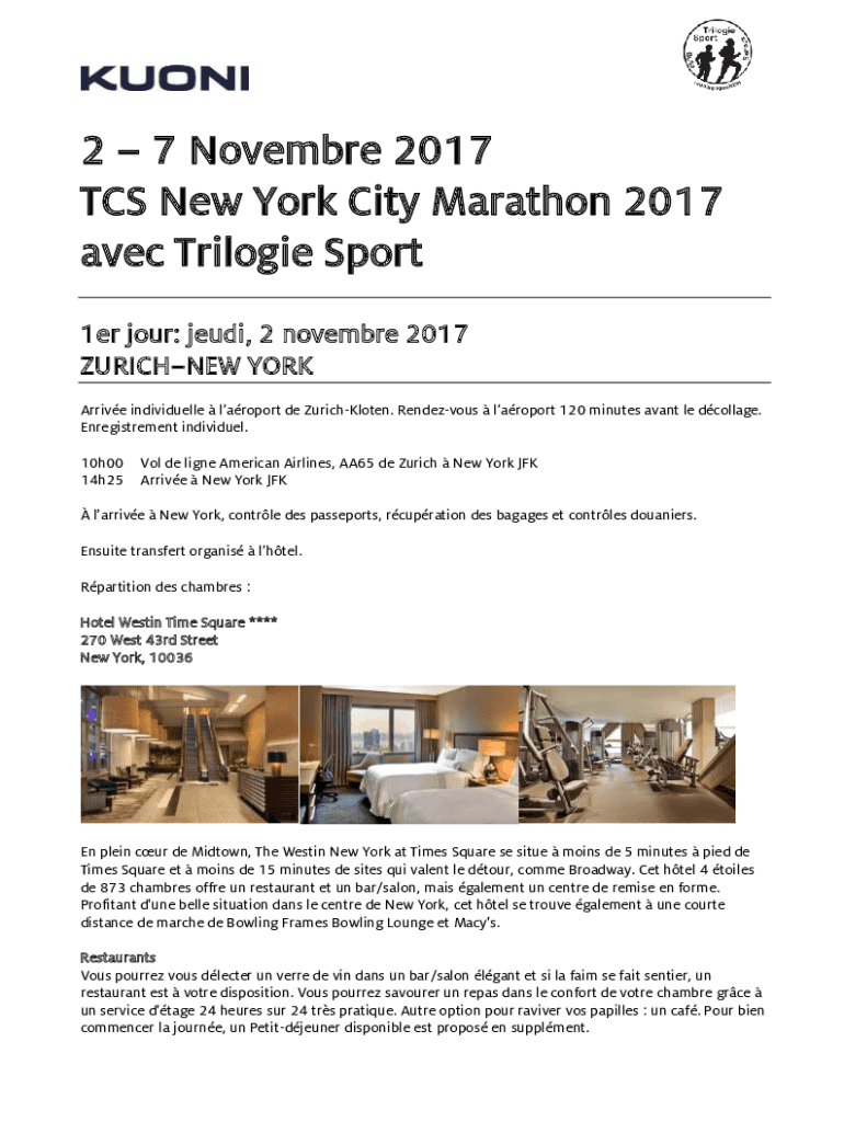 2 7 November 2017 TCS New York City Marathon 2017 Alec Trilogies Sport 1er four: Jedi, 2 November 2017 ZURICH YORK Arrive individually carport de ZurichKloten. Rendezvous carport 120 minute savant