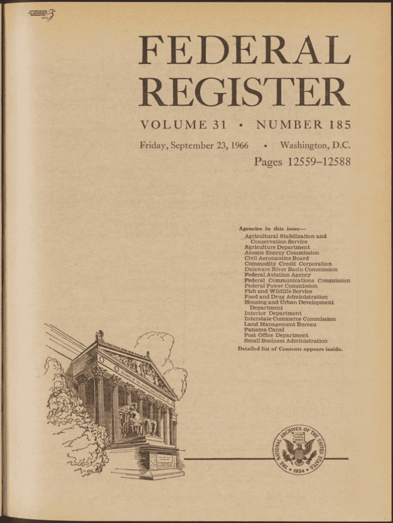 FEDERAL REGISTER V O L U M E 31 N U M B E R 185Friday, September 23, 1966Washington, D.C. Pages 1255912588Agencies in this issueAgricultural Stabilization and Conservation Service Agriculture Department