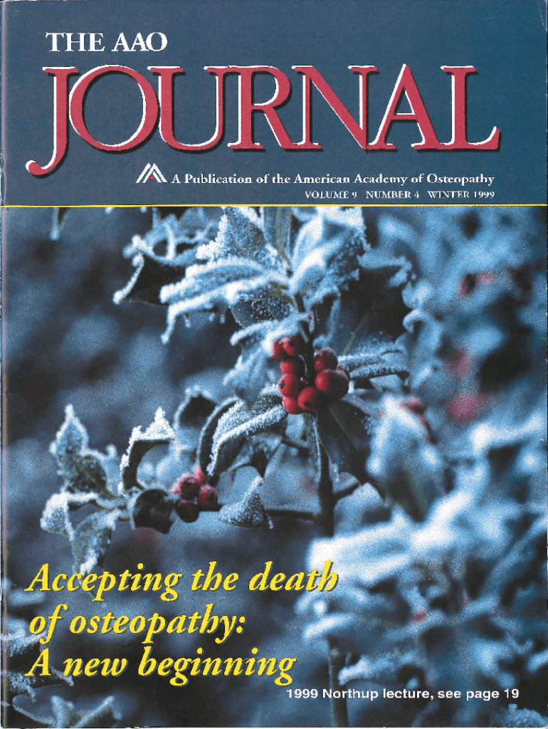 A Publication of the American Academy of Osteopathy VOLUME 9NUMBER 4WINTER 1999AAO\'s CME Calendar American Academy of Osteopathy 3500 DePaul Boulevard, Suite 1080 Indianapolis, IN 462681136 Phone: