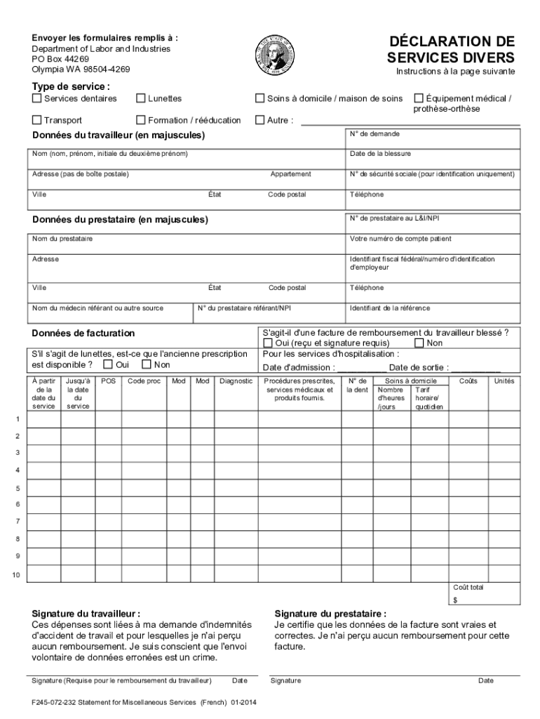Get the free Statement for Miscellaneous Services (F245-072-232). Statement for Miscellaneous Ser...
