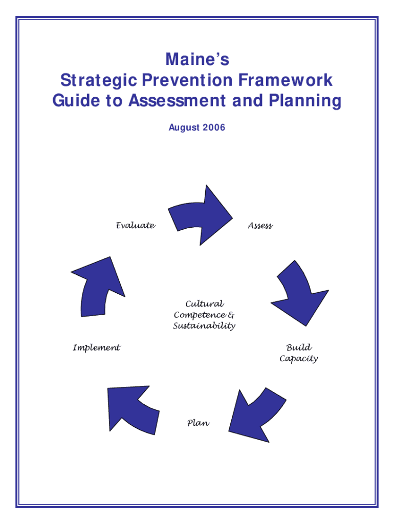Maine's Strategic Prevention Framework Guide to Assessment and Planning August 2006AssessEvaluateCultural Competence & Sustainability Build CapacityImplementPlanMaines Strategic Prevention Framework