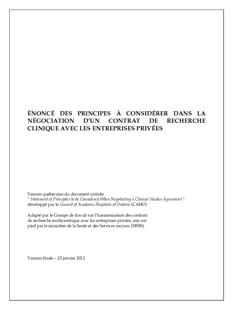Get the free NONC DES PRINCIPESCONSIDRER DANS LA NGOCIATION DUN CONTRAT DE RECHERCHE CLINIQUE AVE...