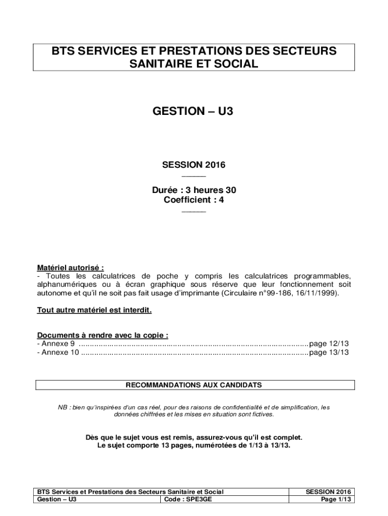 BTS SERVICES ET PRESTATIONS DES SECATEURS SANITARY ET SOCIALIZATION U3SESSION 2016 ___Due : 3 here 30 Coefficients : 4 ___Material actors : Routes LES calculations de Roche y comprise LES calculations